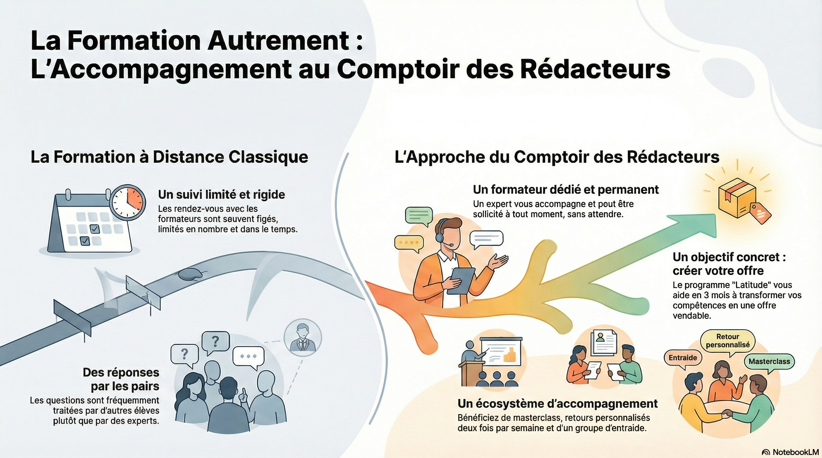 Ce programme a un objectif simple : transformer vos compétences en offre vendable avec un accompagnement humain, concret et régulier.